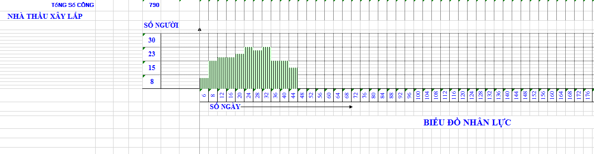 Chương trình sẽ tự động vẽ biểu đồ nhân công, theo số công cộng được theo hàng dọc từ trên xuống.